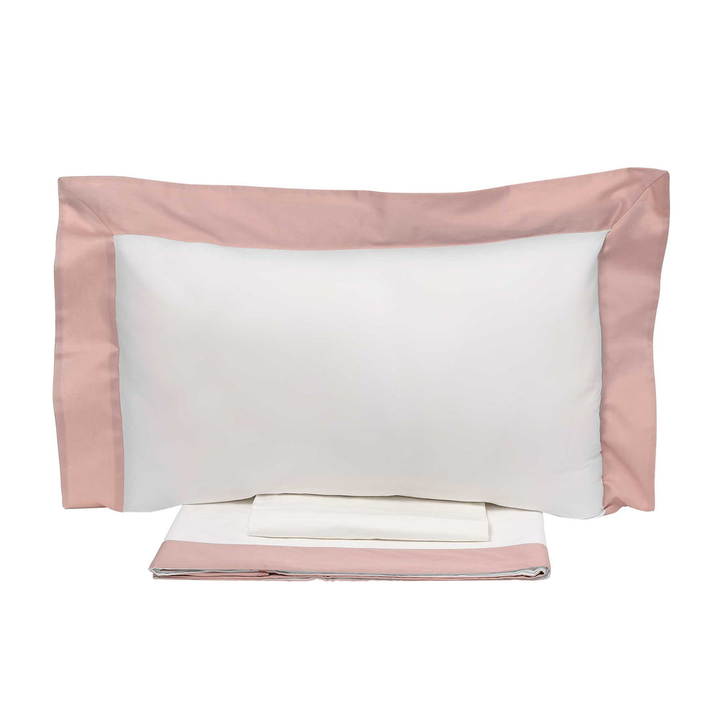Parure de Draps et Taies d'Oreiller avec Bords en Satin Garrini Eveline Ivoire/Margot