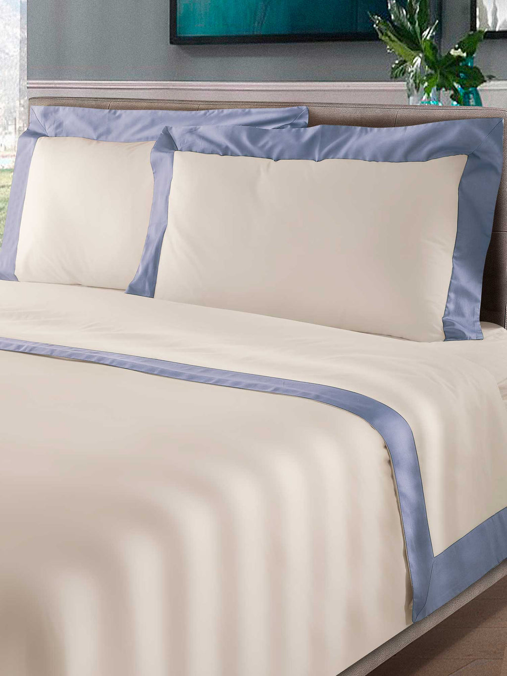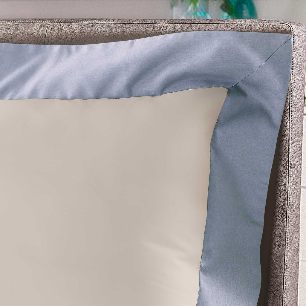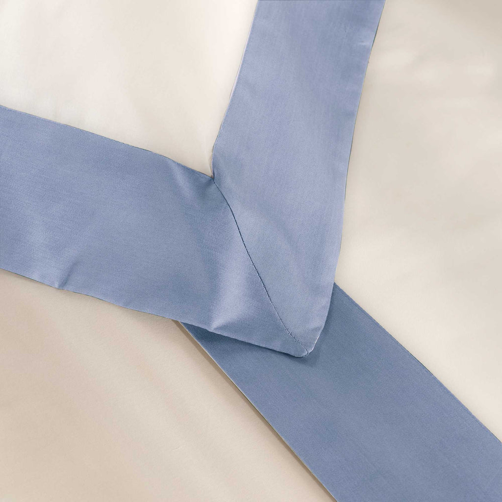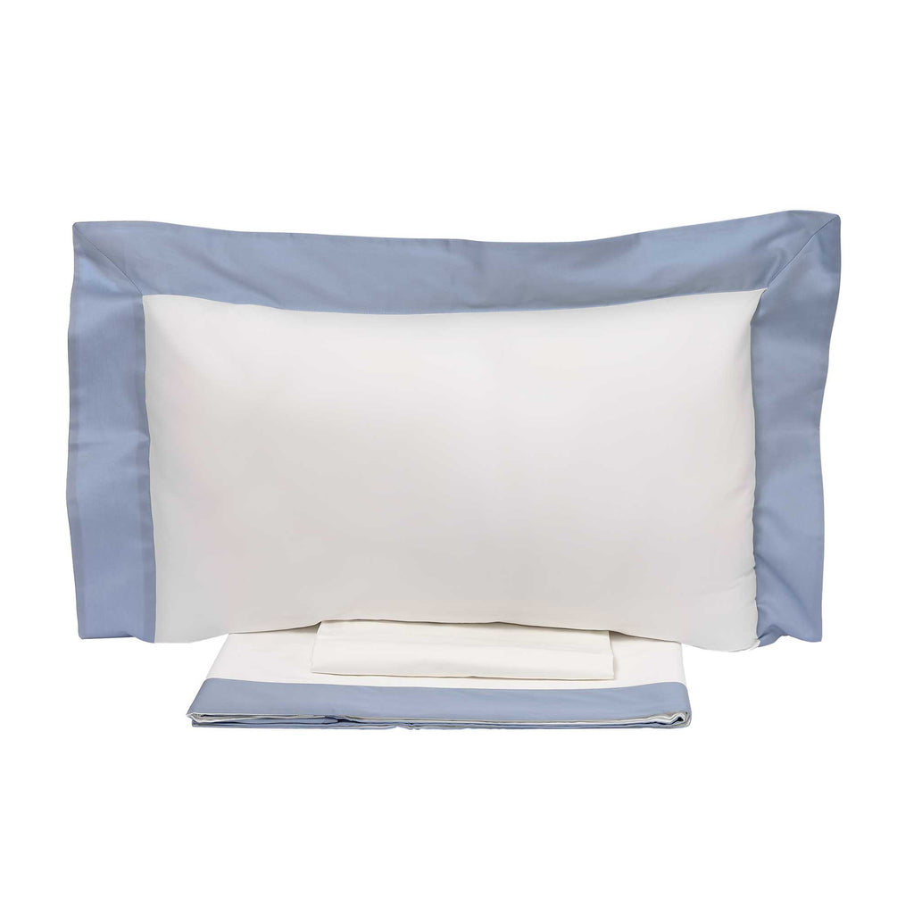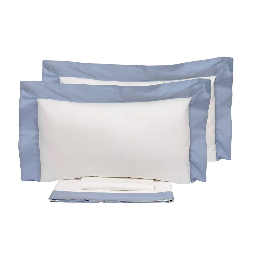Parure de Draps et Taies d'Oreiller avec Bords en Satin Garrini Eveline Ivoire/Avalanche