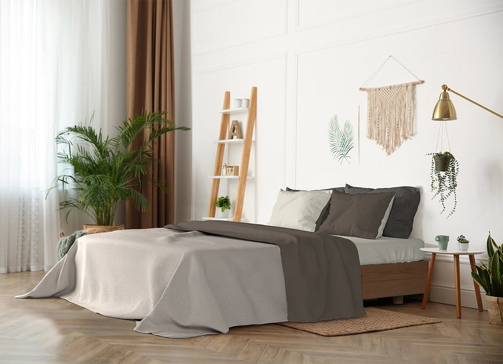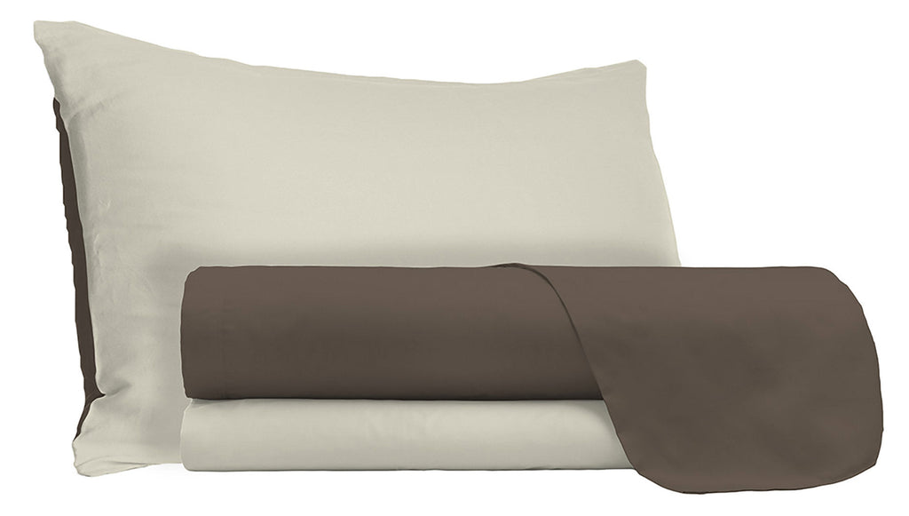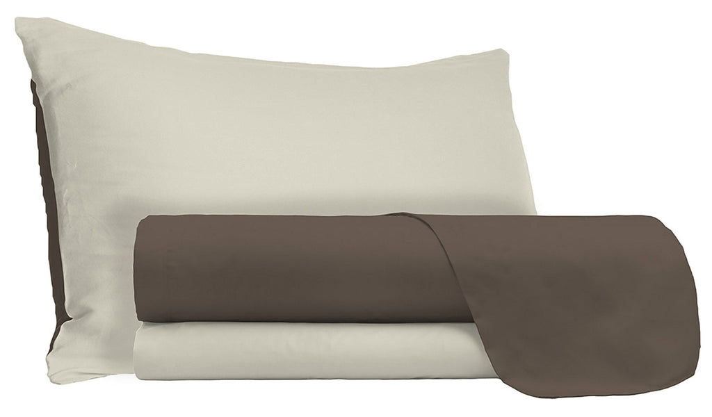 Parure de Draps et Taies d'Oreiller Réversible Marron/Crème