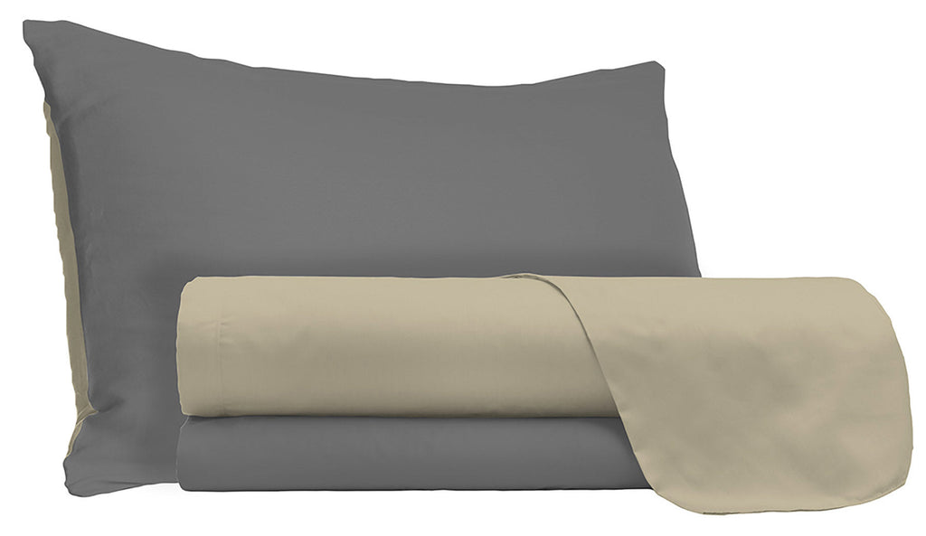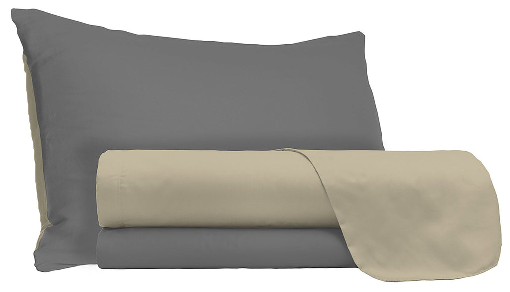 Lot de Draps de Dessus et Taies d'Oreiller Double Face Gris Tourterelle/Fumé
