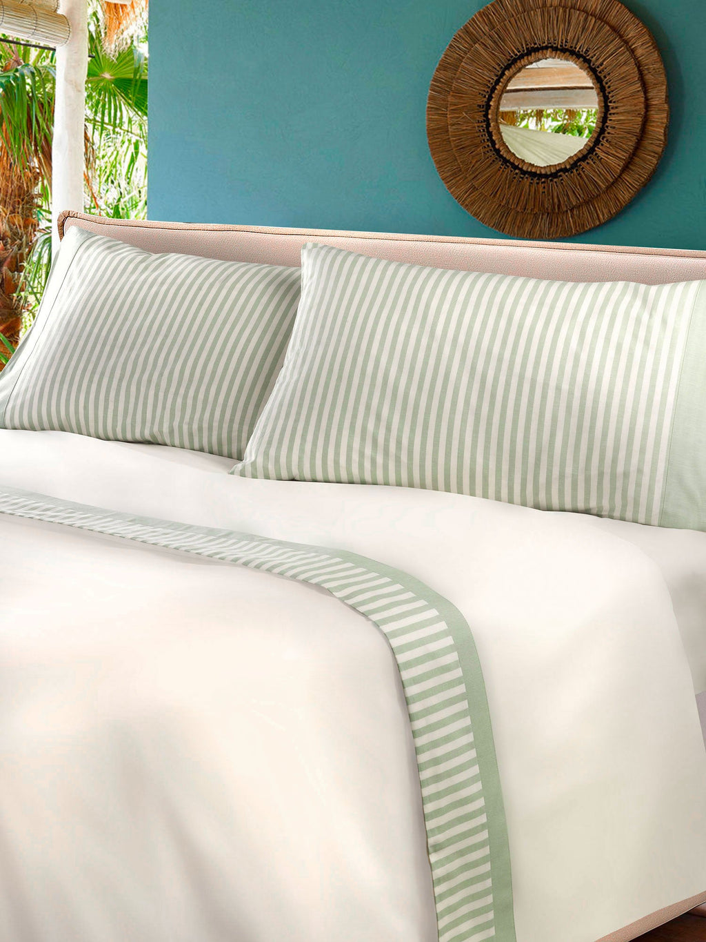Ensemble de draps et taies d'oreiller teints en fil Garrini Jennifer Menthe