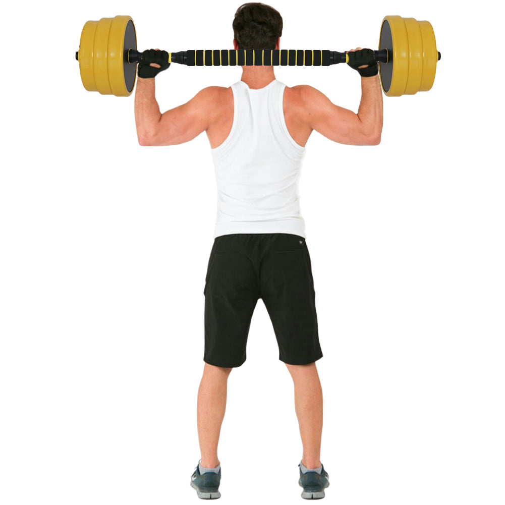 La funzionalità speciale di questo set di pesi è quella di poterli usare come due manubri separati o insieme, collegandoli al bilanciere con la barra di estensione.