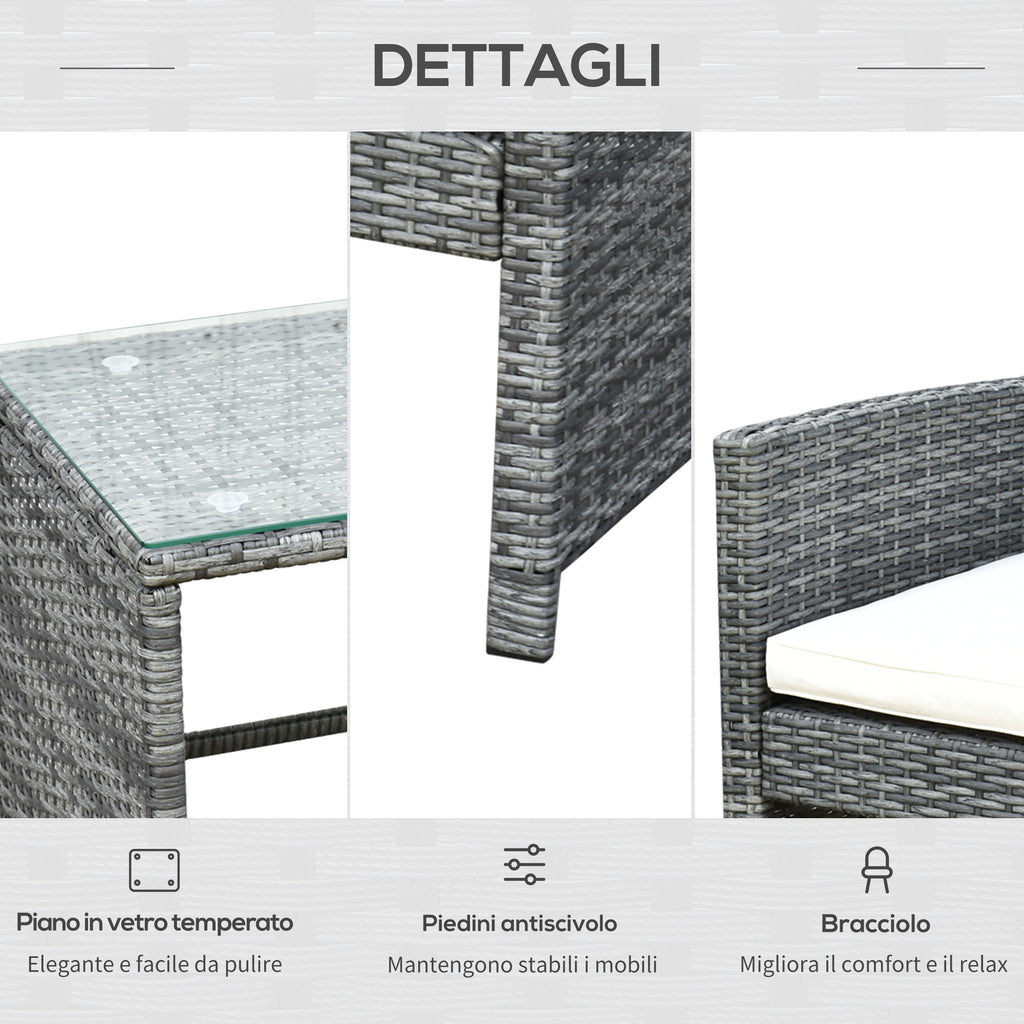 Ensemble de mobilier d'extérieur en rotin PE Canapé et 2 fauteuils avec table basse et coussins gris