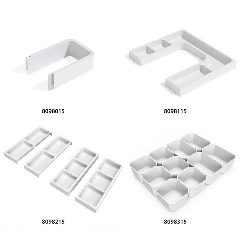 Gli organizer laterali sono progettati per essere installati in un cassetto del bagno, la loro funzione è quella di classificare e riporre i tuoi oggetti. I suoi fori sono studiati per poter posizionare i contenitori organizer Tidy e per poter personalizzare il design della disposizione degli accessori. Sono adatti a moduli di qualsiasi larghezza e possono essere montati in cassetti con una profondità minima di 350 mm. Gli organizer dei cassetti laterali possono contenere tantissimi oggetti, sono facili da pulire e offrono un facile accesso agli accessori per il trucco, agli articoli da toeletta, ai gioielli, ecc.