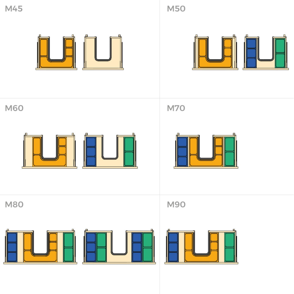 Gli organizer laterali sono progettati per essere installati in un cassetto del bagno, la loro funzione è quella di classificare e riporre i tuoi oggetti. I suoi fori sono studiati per poter posizionare i contenitori organizer Tidy e per poter personalizzare il design della disposizione degli accessori. Sono adatti a moduli di qualsiasi larghezza e possono essere montati in cassetti con una profondità minima di 350 mm. Gli organizer dei cassetti laterali possono contenere tantissimi oggetti, sono facili da pulire e offrono un facile accesso agli accessori per il trucco, agli articoli da toeletta, ai gioielli, ecc.