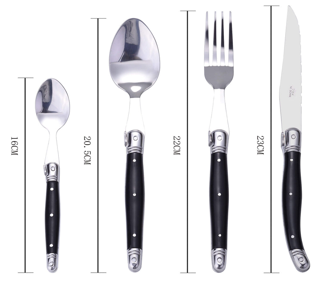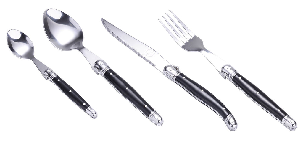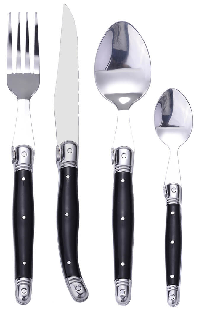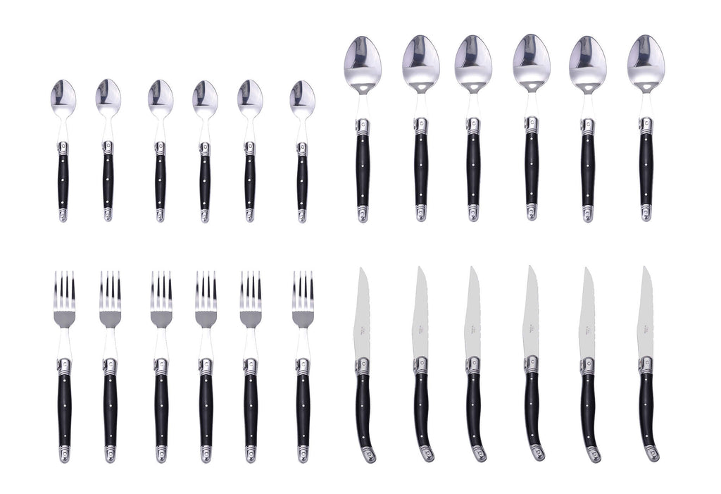 Ensemble de couverts 24 pièces en acier inoxydable avec manche en ABS noir