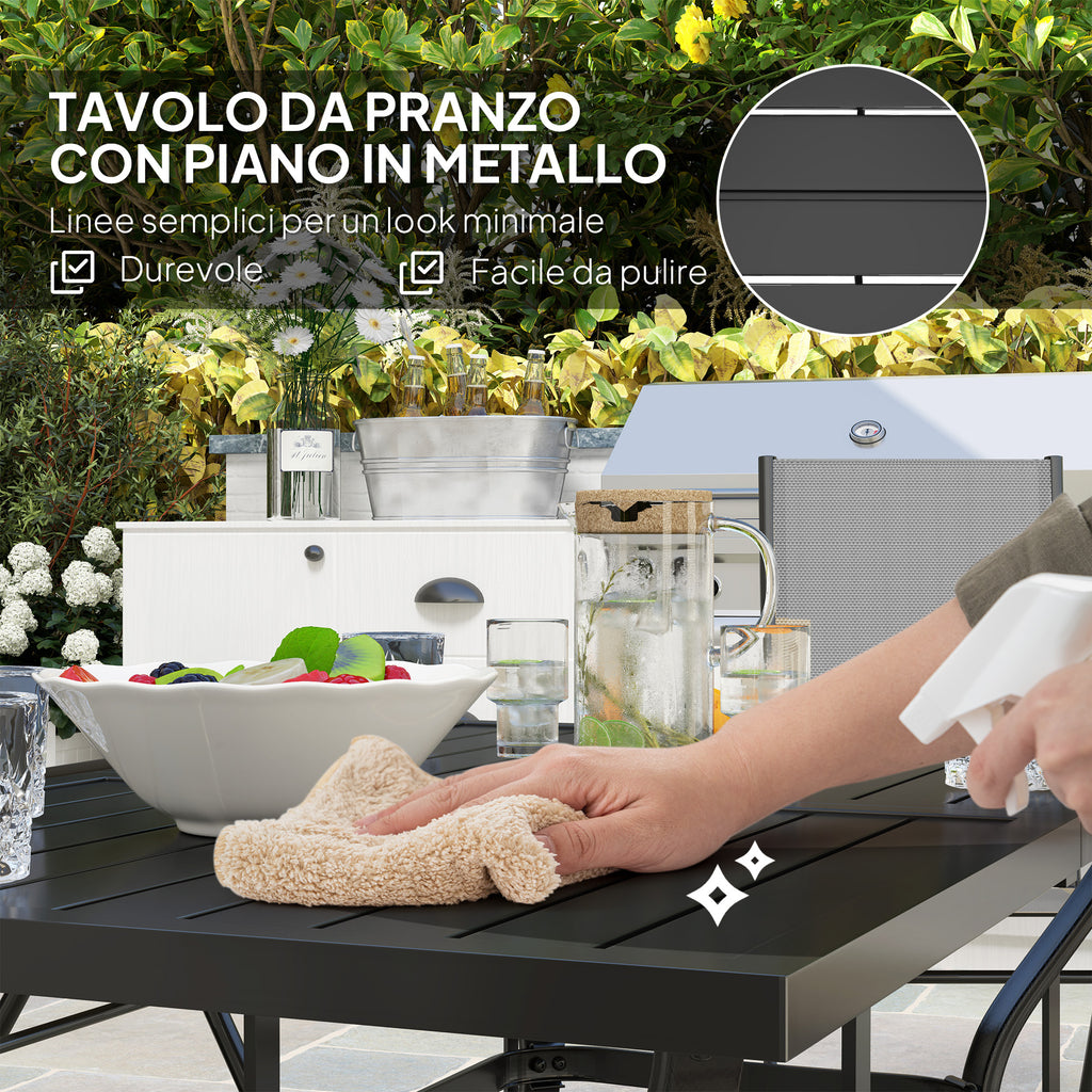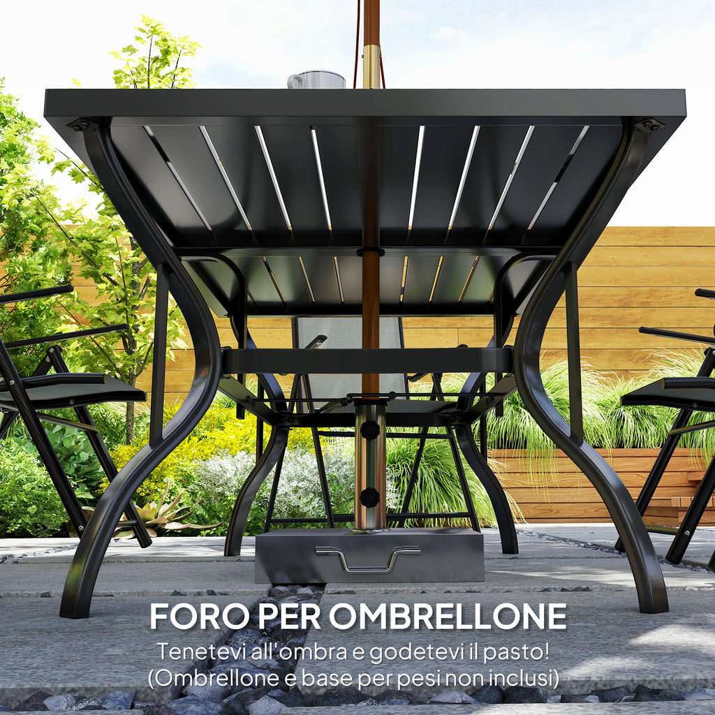 • TAVOLO CON FORO PER OMBRELLONE: La superficie del tavolo da giardino in metallo da 0.9 mm con un foro di Ø50 mm adatto per pali da Ø38-Ø48 mm, permette di aggiungere facilmente un ombrellone da esterno per stare al riparo dal sole