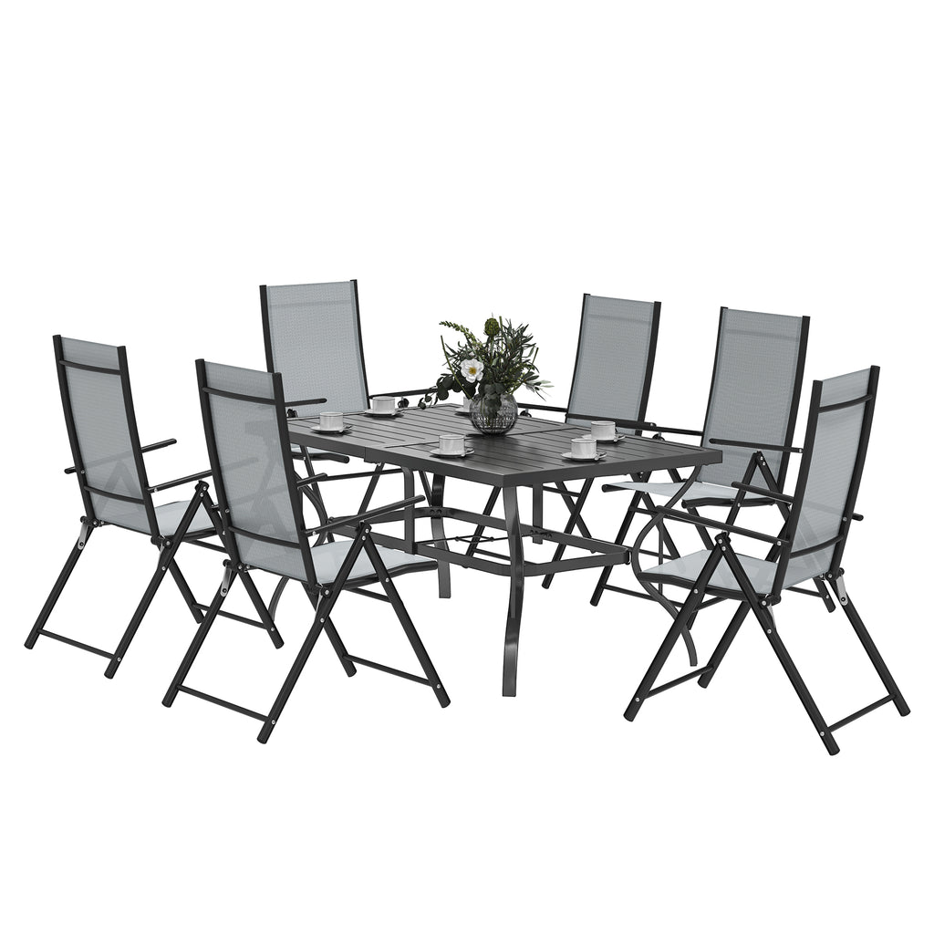 Set Salotto da Giardino 7 Pezzi con Tavolo da Pranzo con Foro per Ombrellone e 6 Sedie Pieghevoli Grigio