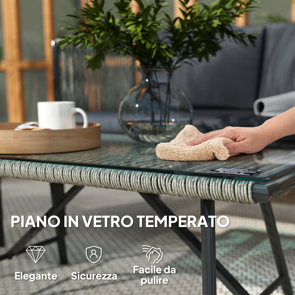 Set Salotto da Giardino con 2 Poltrone Divanetto e Tavolino da Caffè in Vetro in Rattan Grigio