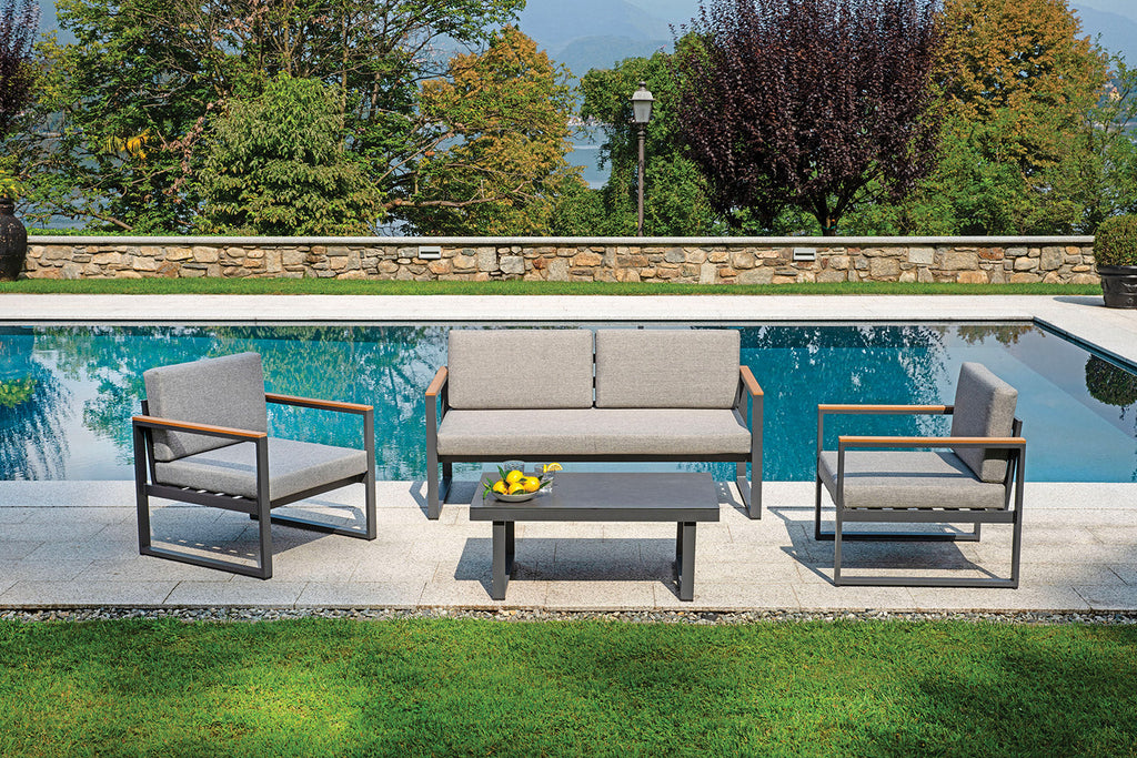 Set Salotto da Giardino Divano 2 Poltrone e Tavolino Cerveteri in Alluminio Antracite e Grigio