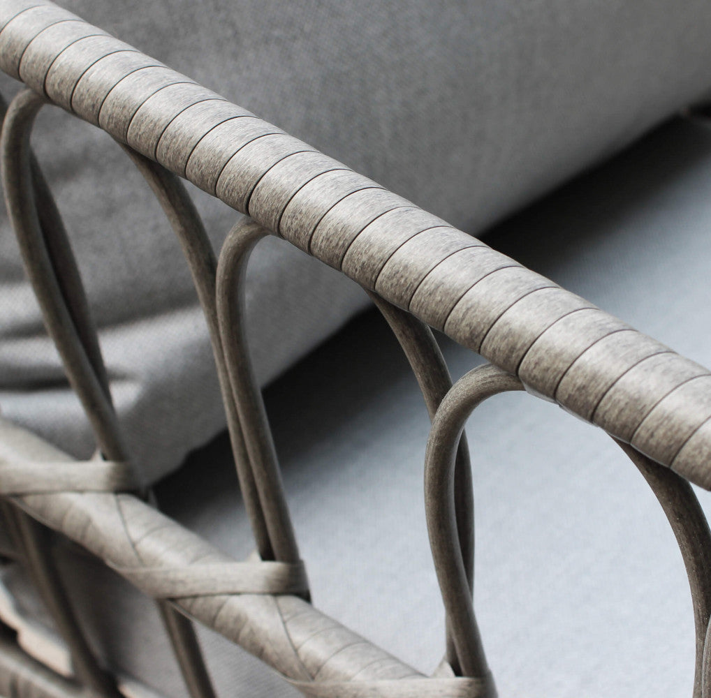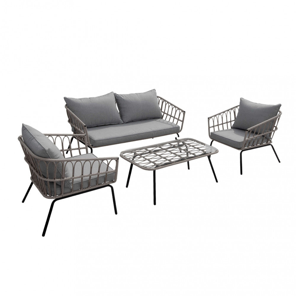 Salon de jardin canapé 2 fauteuils et table basse avec coussins en acier gris