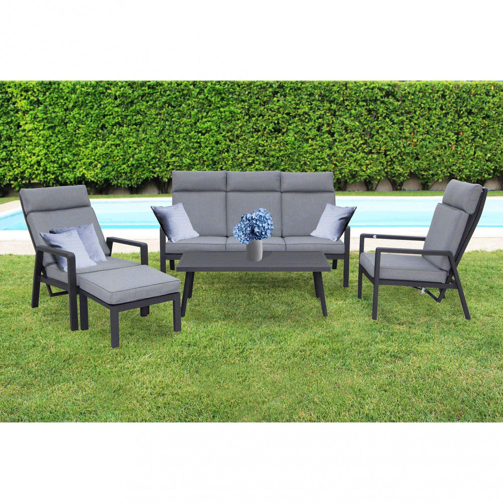 Ensemble Salon de Jardin Canapé 2 Fauteuils et Table Basse avec Coussins en Aluminium Anthracite