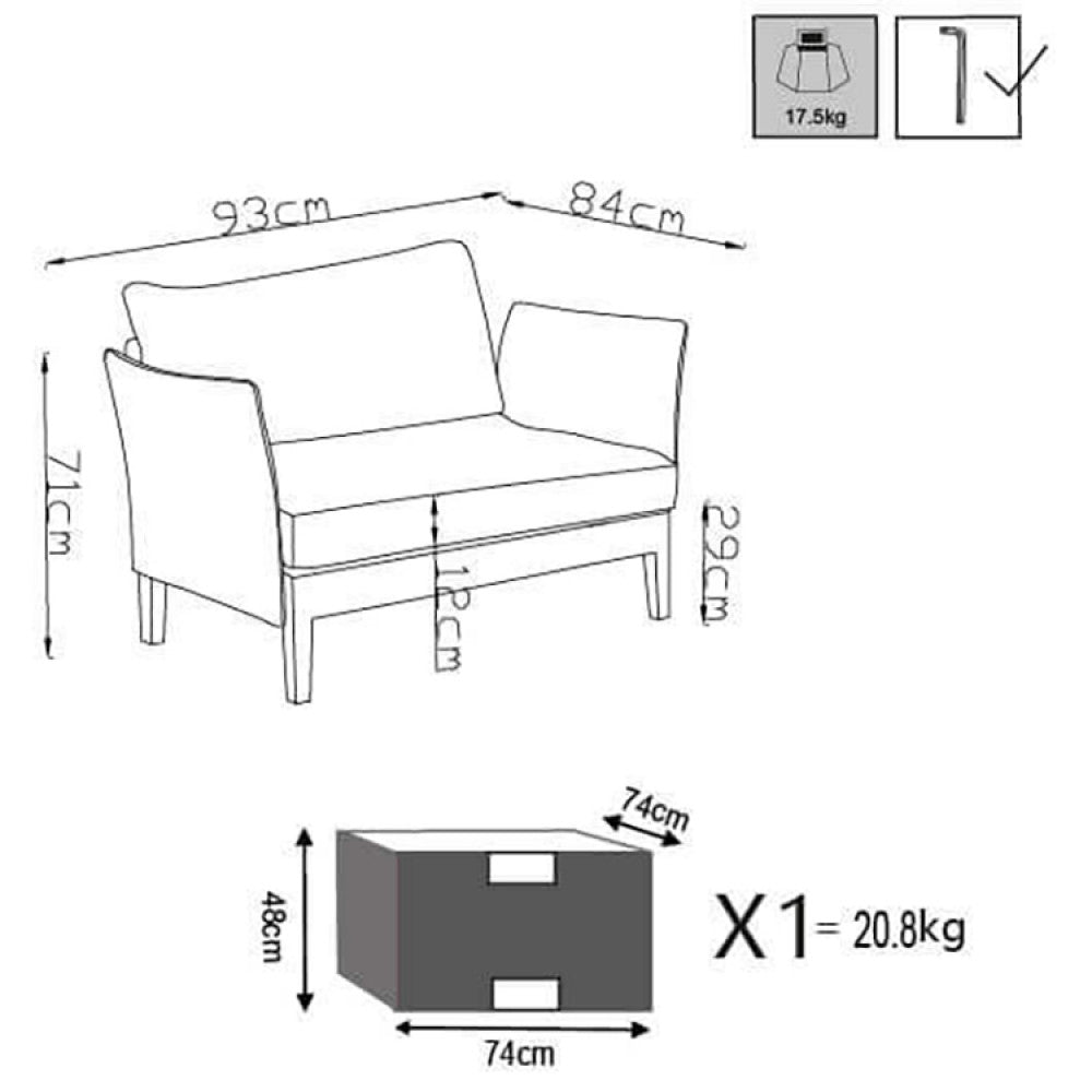 Salon de jardin canapé 2 fauteuils et table basse avec coussins en aluminium blanc
