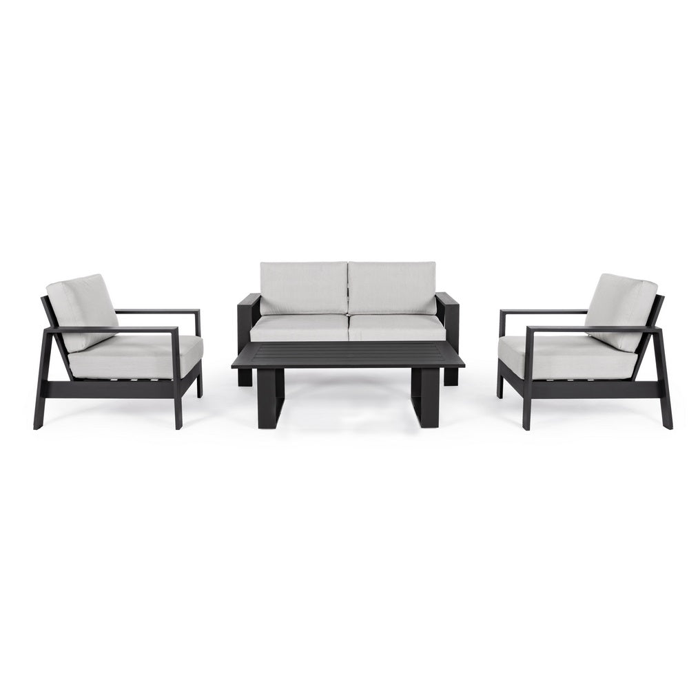 Set Salotto da Giardino Divano 2 Poltrone e Tavolino con cuscini in alluminio grigio