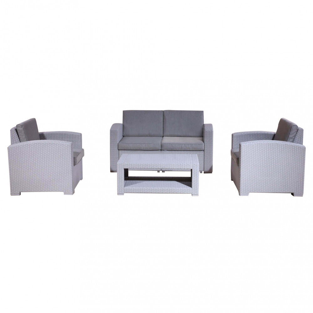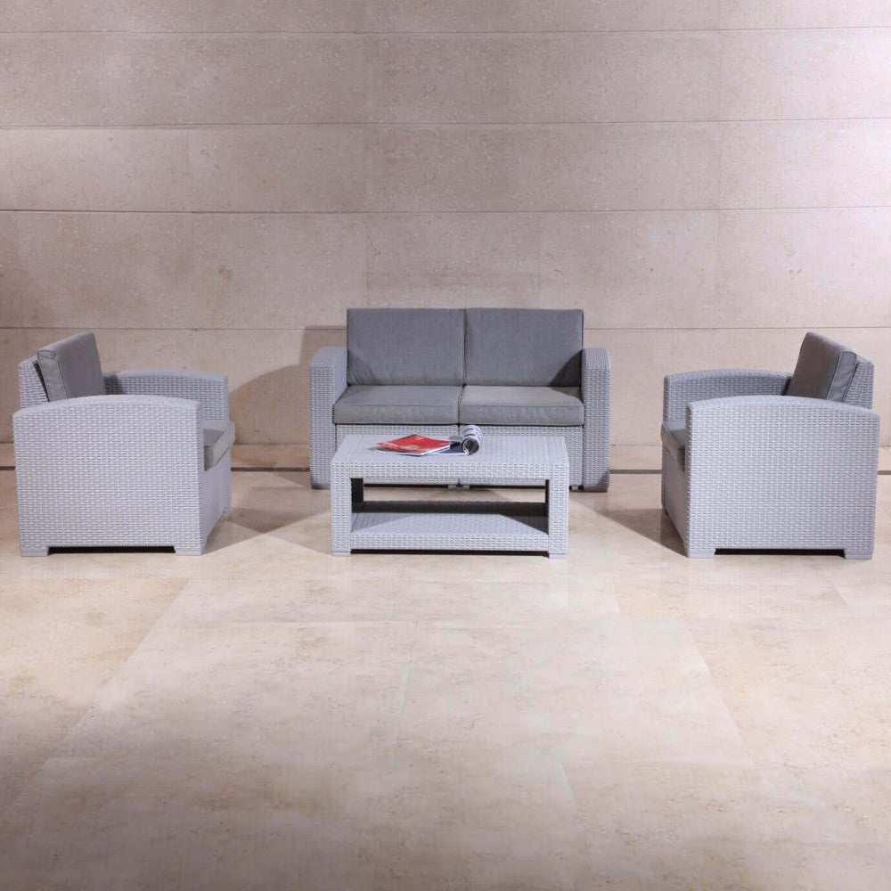 Ensemble Salon de Jardin Canapé 2 Fauteuils et Table Basse avec Coussins en Plastique Gris