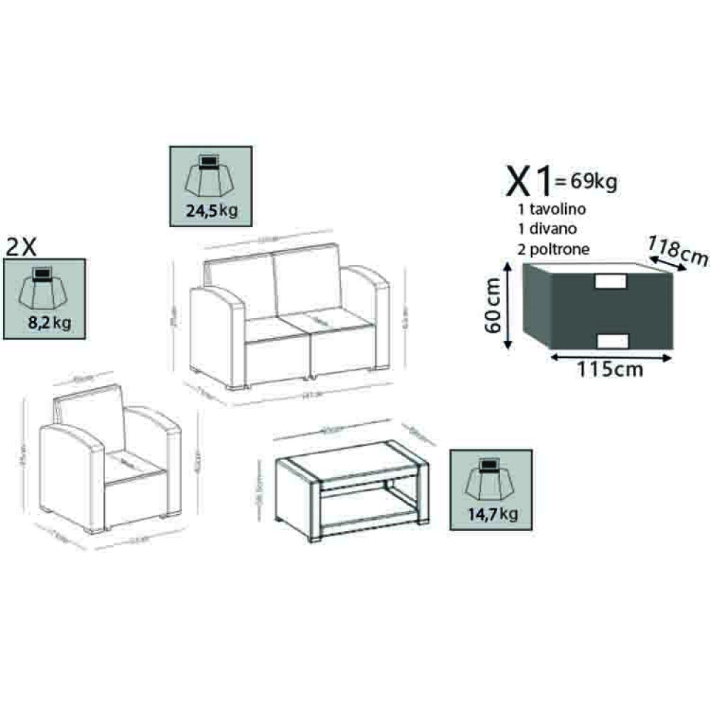 Salon de Jardin Canapé 2 Fauteuils et Table Basse avec Coussins en Plastique Gris