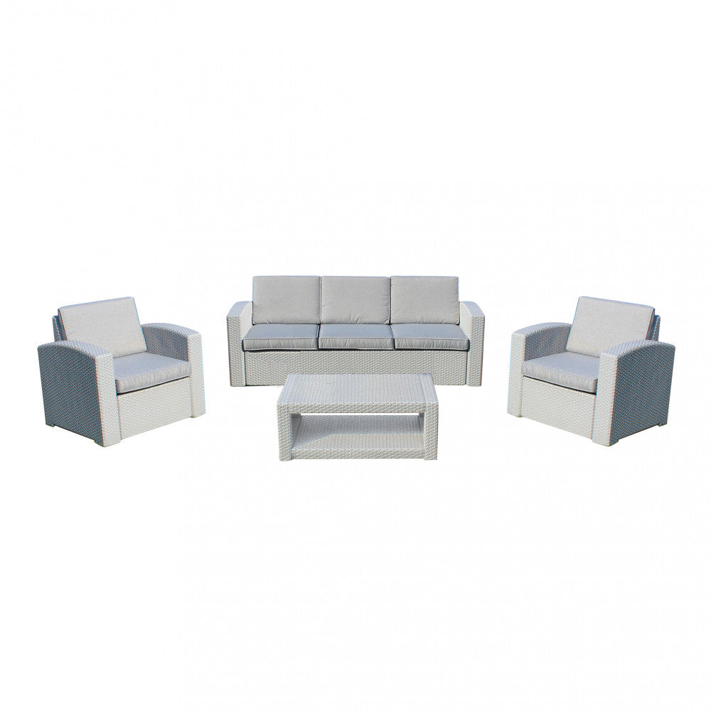 Salon de Jardin Canapé 2 Fauteuils et Table Basse avec Coussins en Plastique Gris