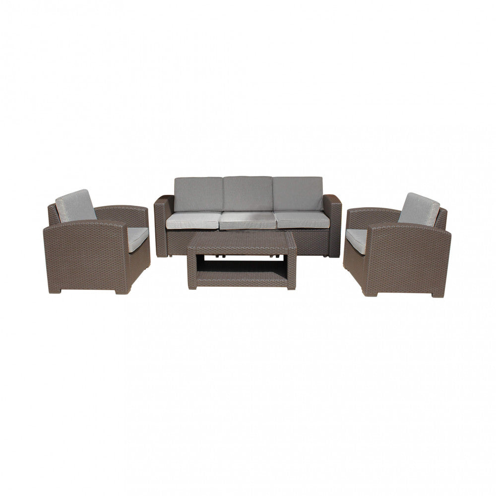 Ensemble Salon de Jardin Canapé 2 Fauteuils et Table Basse avec Coussins en Plastique Gris Tourterelle