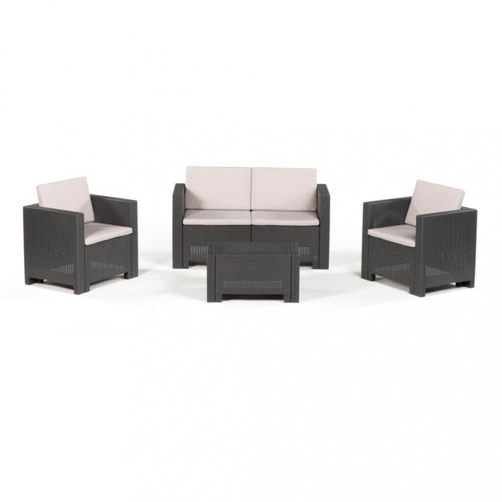 Salon de jardin canapé 2 fauteuils et table basse avec coussins en polypropylène noir