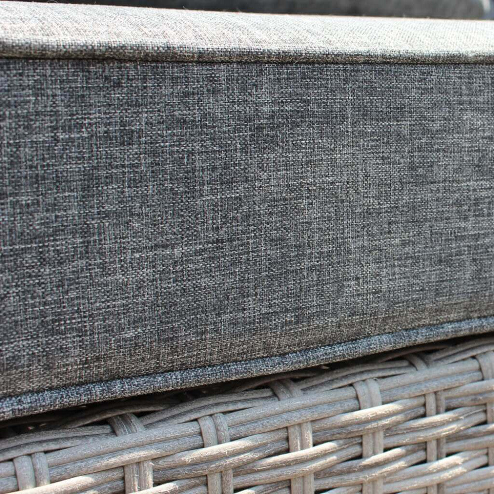 Salon de jardin canapé 2 fauteuils et table basse avec coussins en osier gris