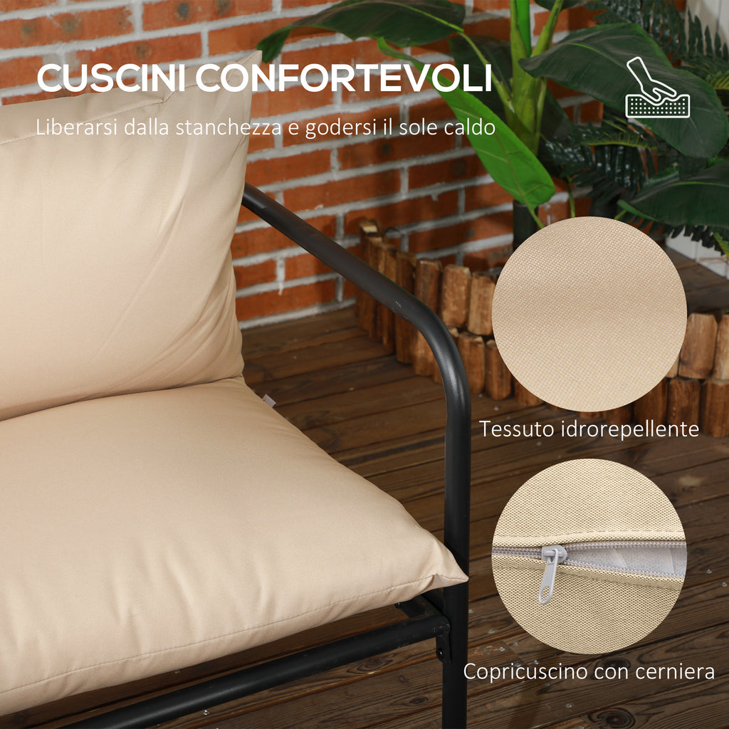 Set Salotto da Giardino Divano 2 Poltrone e Tavolino in Acciaio e Poliestere Khaki