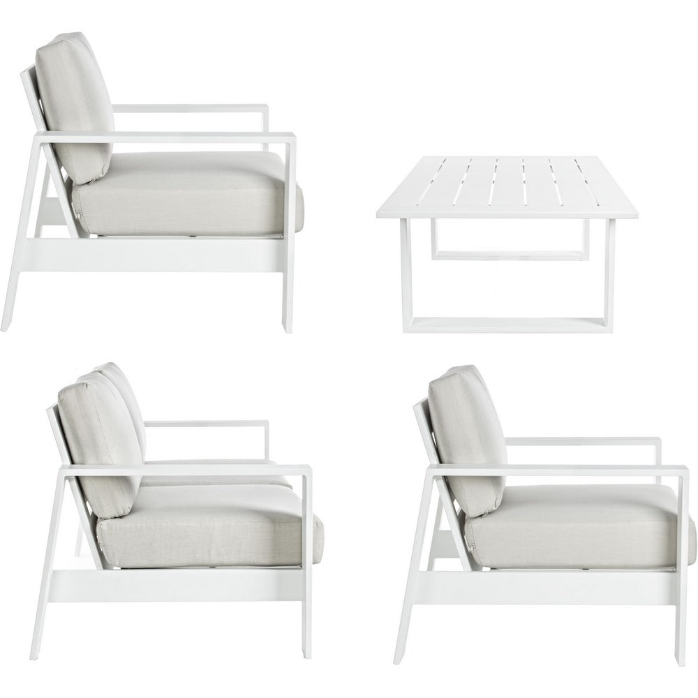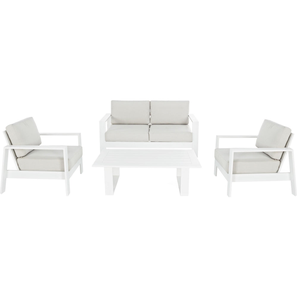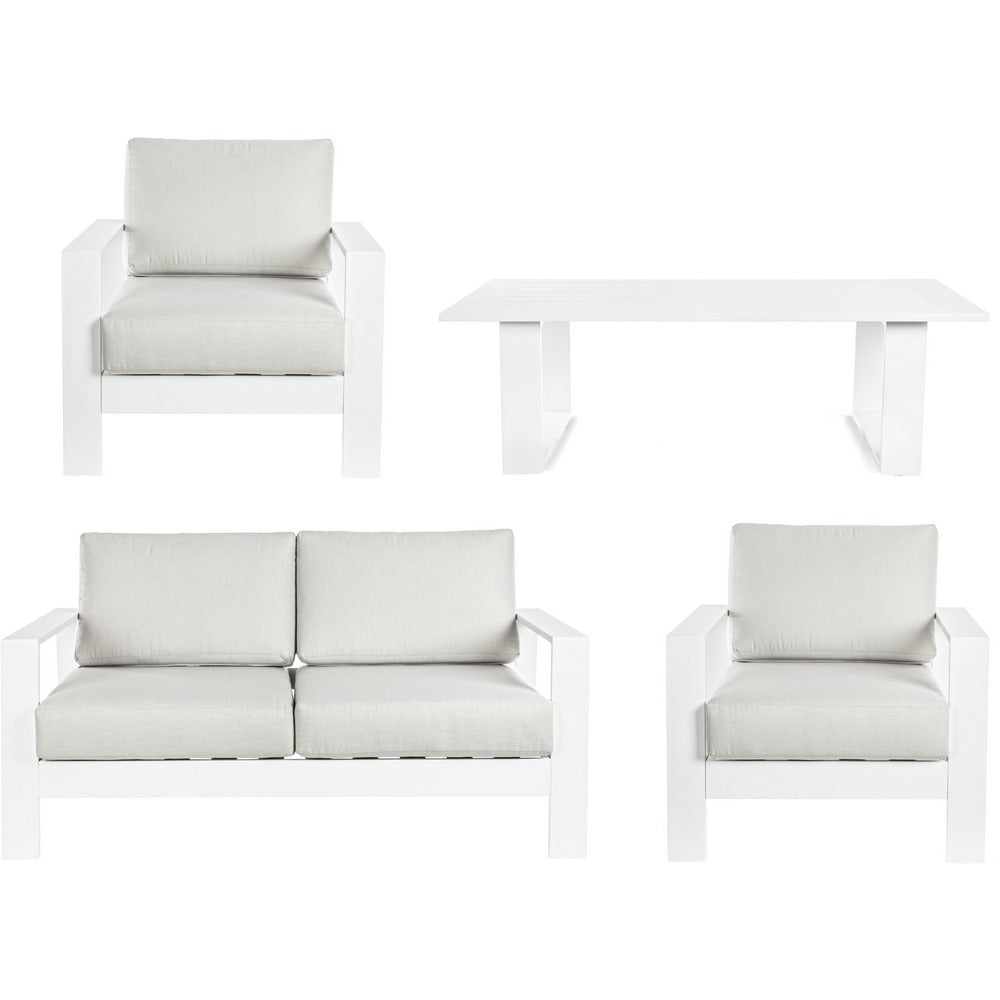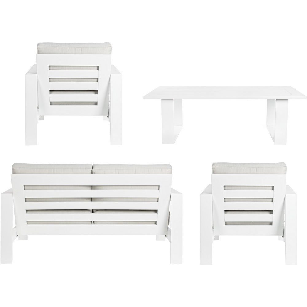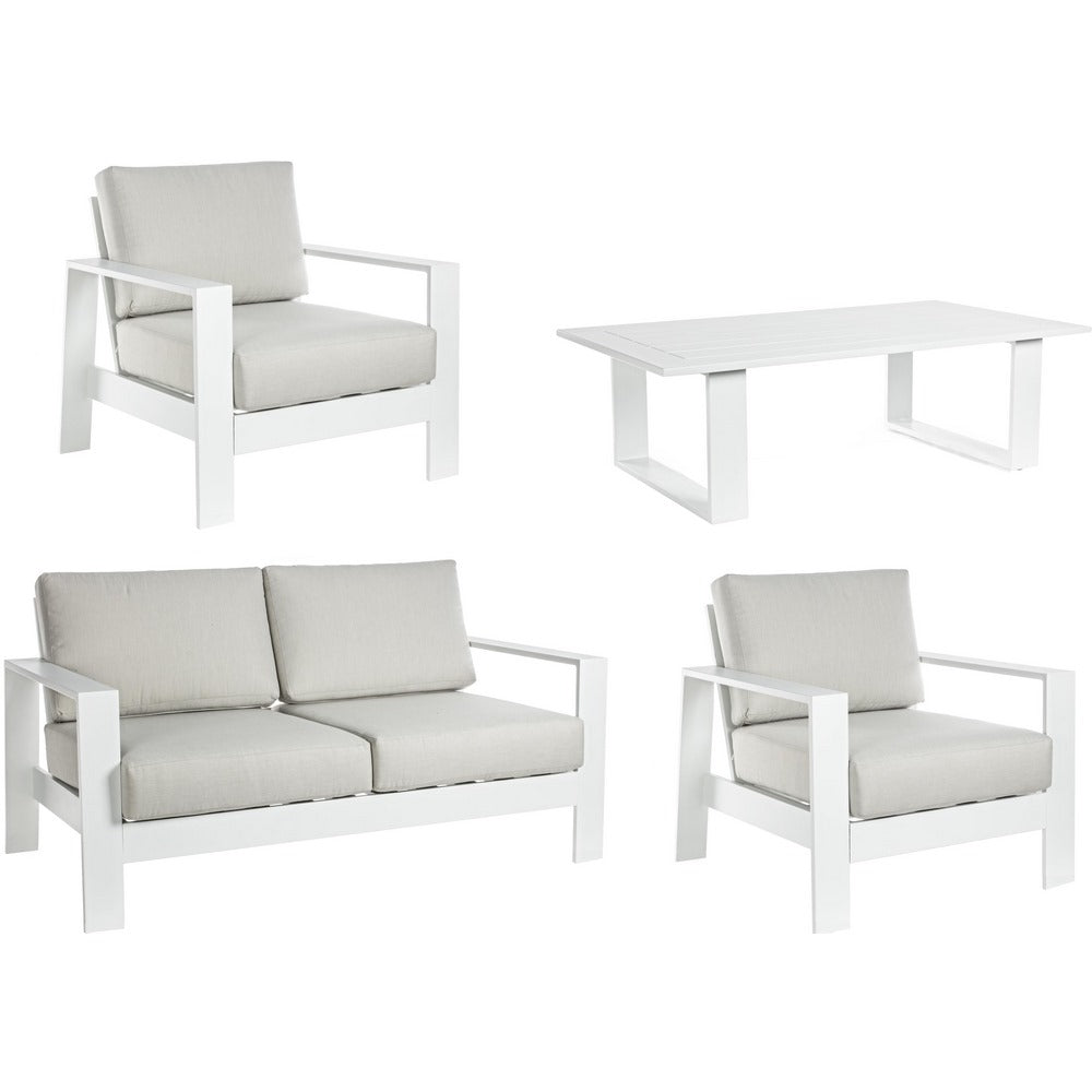 Set Salotto da Giardino Divano 2 Poltrone e Tavolino in alluminio bianco