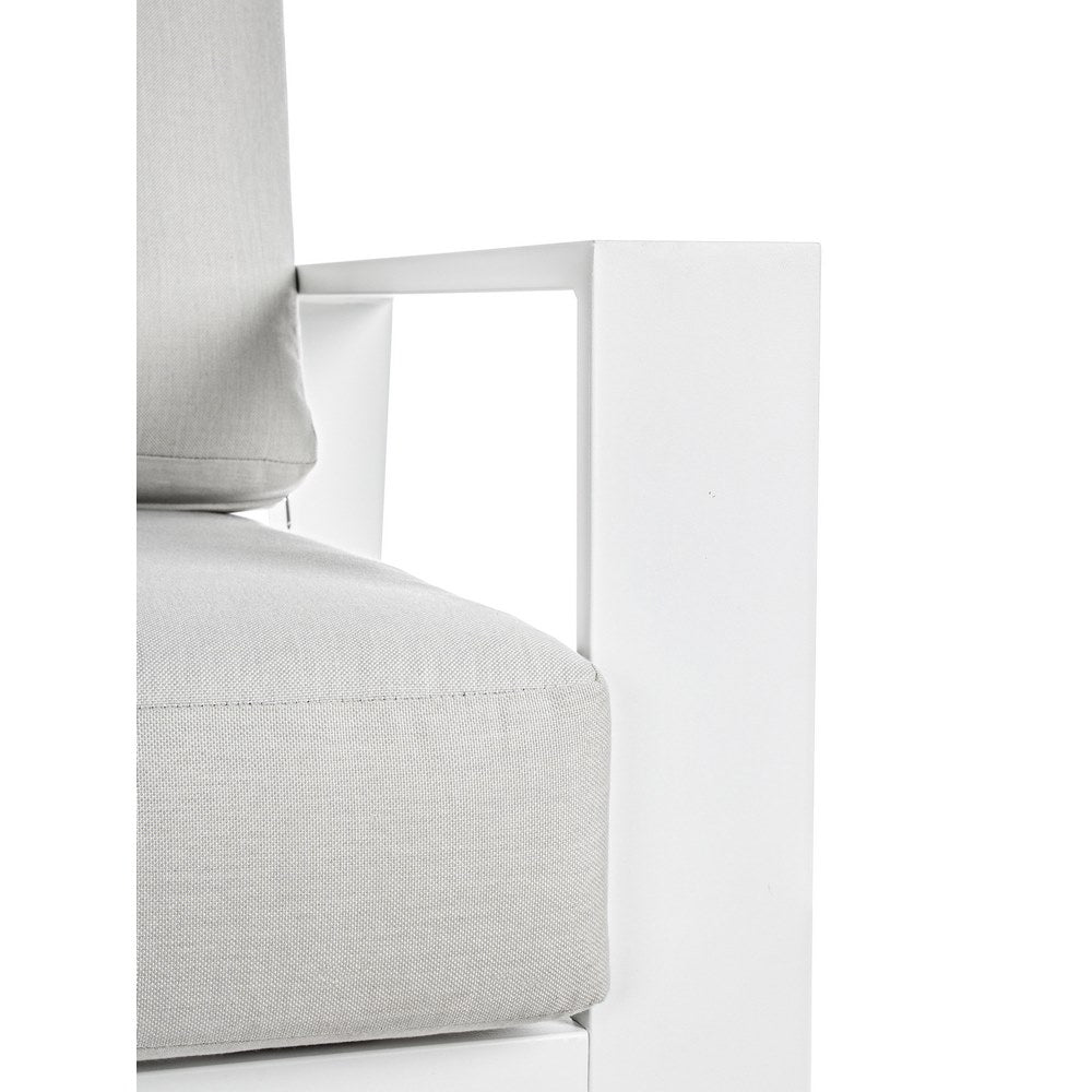 Grazie alla sua robusta struttura in alluminio verniciato a polvere epossidica il set arredo giardino alluminio Bars Bianco è la soluzione ideale per il tuo giardino o terrazzo. Potrai rilassarti e godere dei tuoi spazi esterni senza nessuna preoccupazione, garantendoti una posizione comoda e confortevole grazie alla presenza della cuscineria creata con tessuto olefin (100%polypropylene).