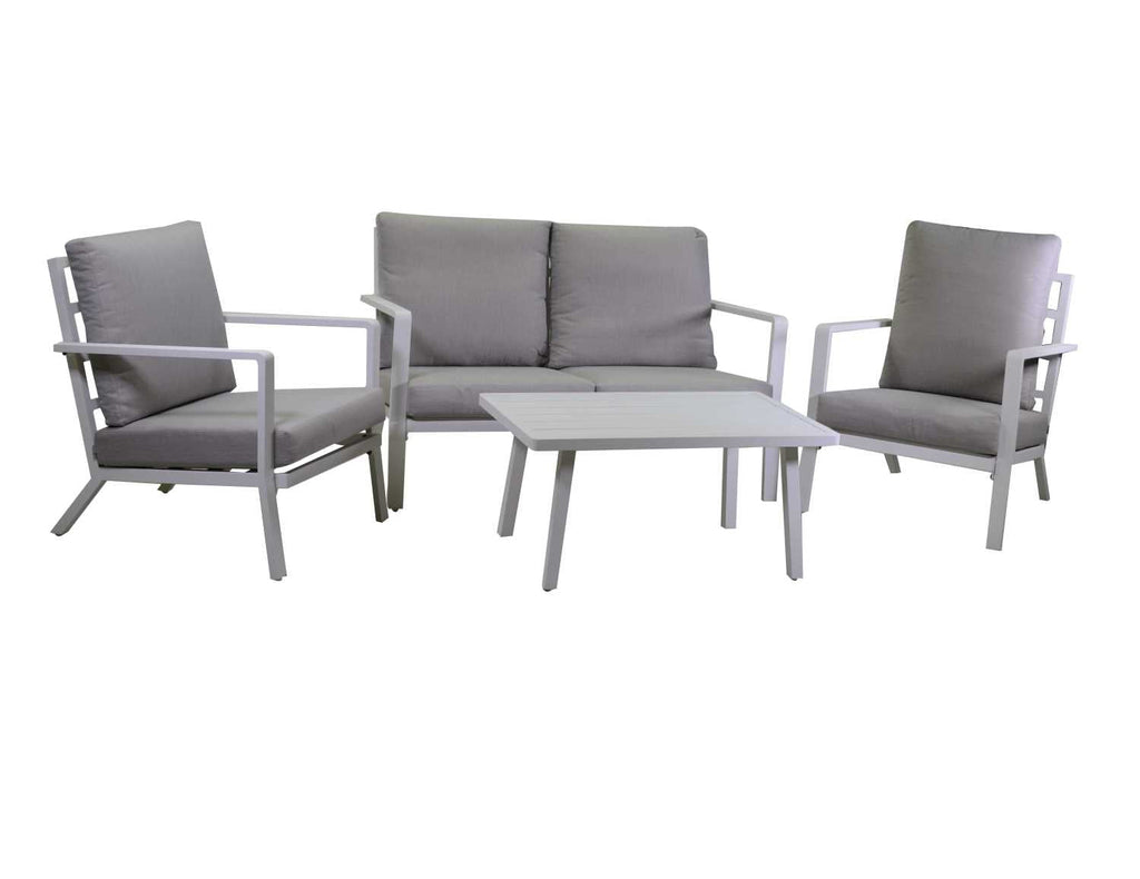 Set Salotto da Giardino Divano 2 Poltrone e Tavolino in Alluminio New Boston Bianco