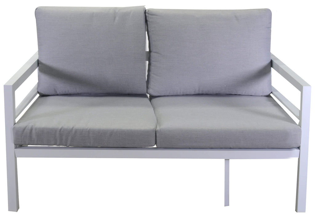 Salon de Jardin Canapé 2 Fauteuils et Table Basse en Aluminium Blanc Irvine Neuf