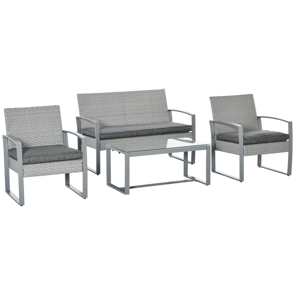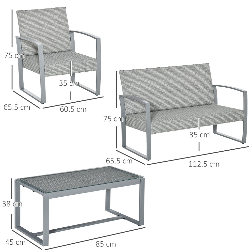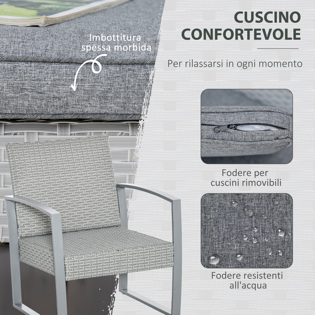 Salon de Jardin Canapé 2 Fauteuils et Table Basse en Métal et Rotin Gris