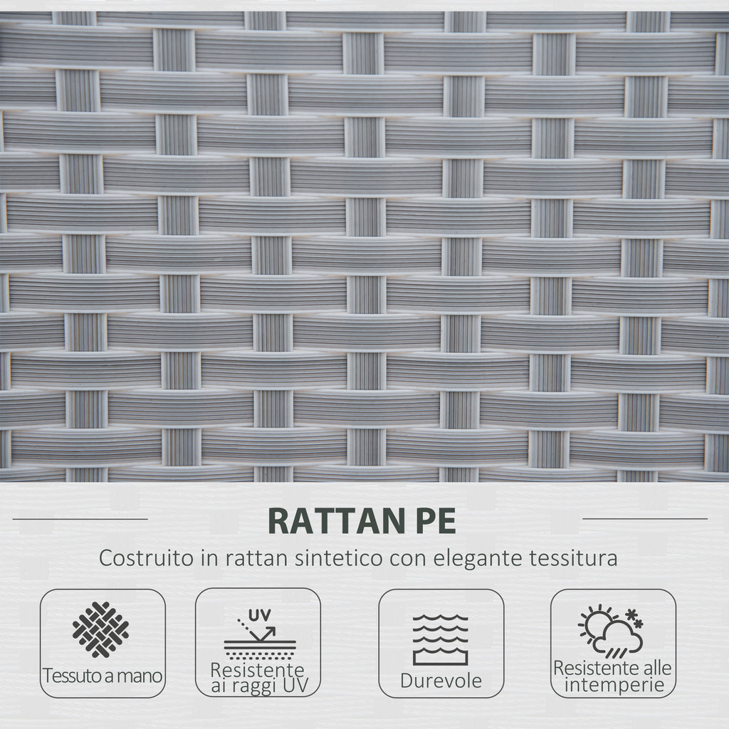 - STRUCTURE RÉSISTANTE : La structure du salon de jardin est en métal thermolaqué, tandis que les sièges sont en rotin synthétique et imperméable.
