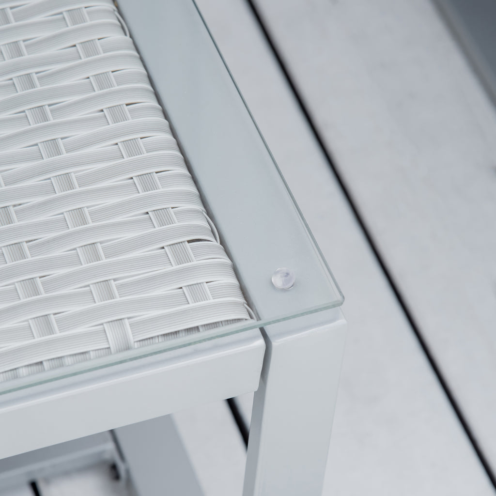 - TABLE EN VERRE TREMPÉ : La table basse de jardin a une structure en métal et un plateau en verre trempé, résistant et facile à nettoyer.