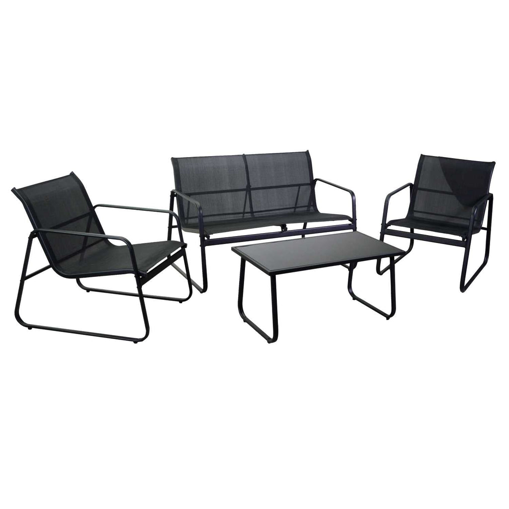 Set Salotto da Giardino Divano 2 Poltrone e Tavolino in Metallo Jewell Antracite