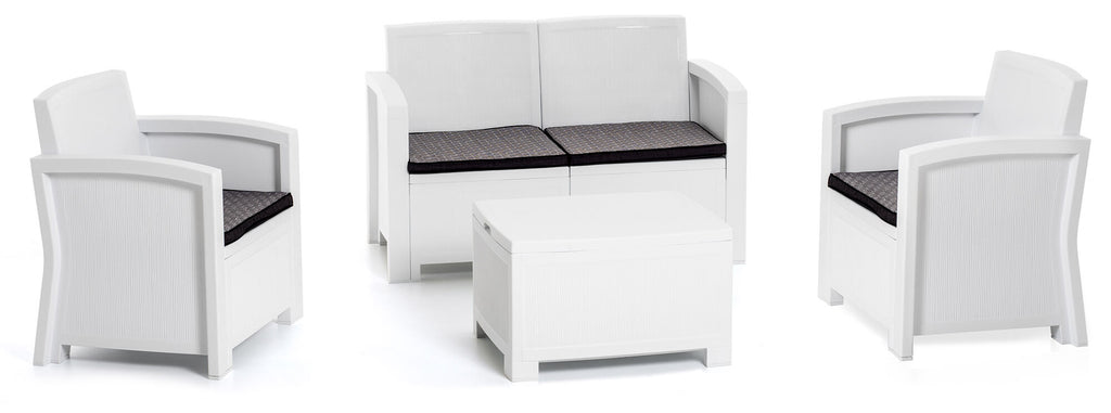 Ensemble Salon de Jardin Canapé 2 Fauteuils et Table Basse en Polypropylène Effet Rotin Blanc New York