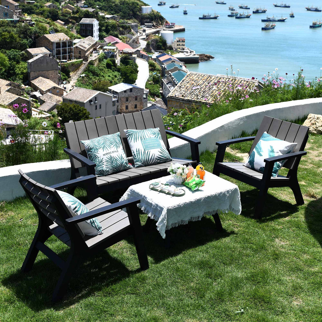 - UTILISATION À L'EXTÉRIEUR : les meubles sont fabriqués en PP durable et les sièges ont une conception à lattes pour empêcher l'accumulation d'eau et d'humidité