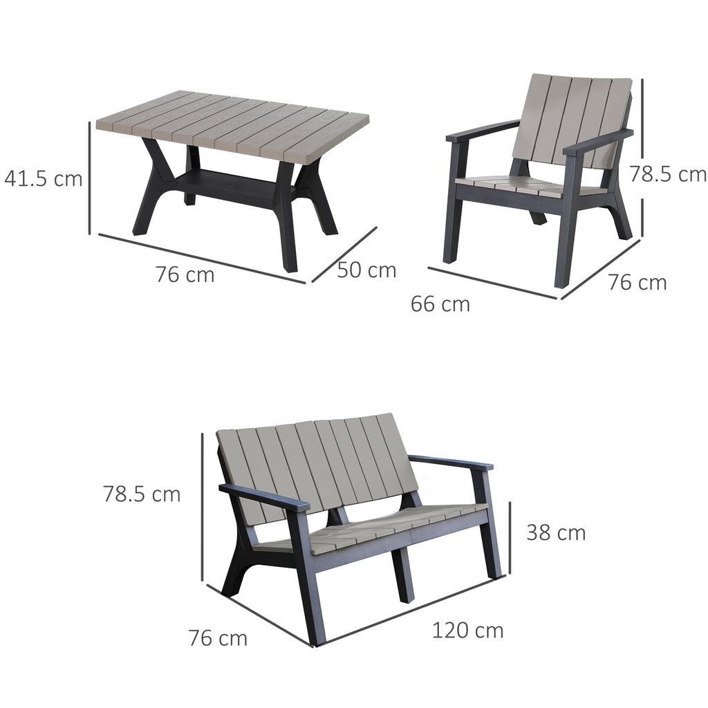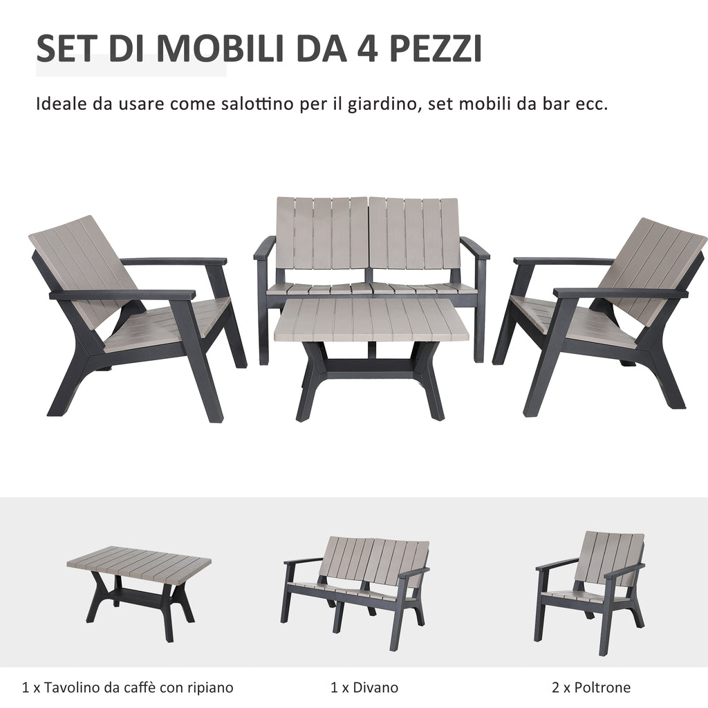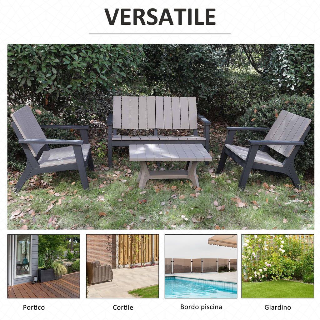 Salon de jardin canapé 2 fauteuils et table basse en polypropylène gris