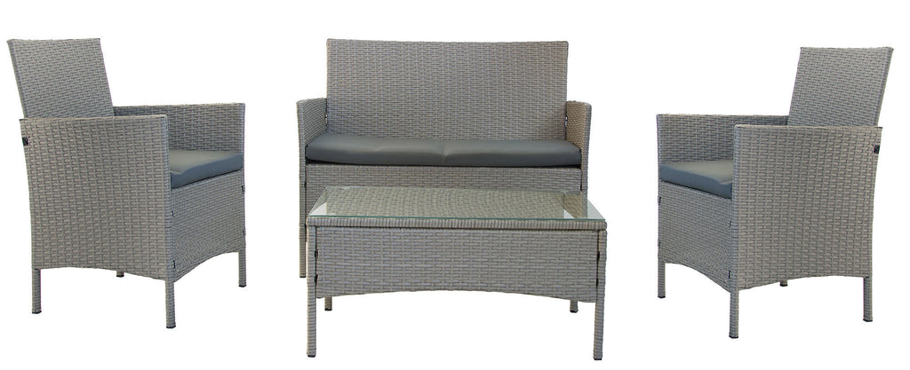 Ensemble Salon de Jardin Canapé 2 Fauteuils et Table Basse en Rotin Gris