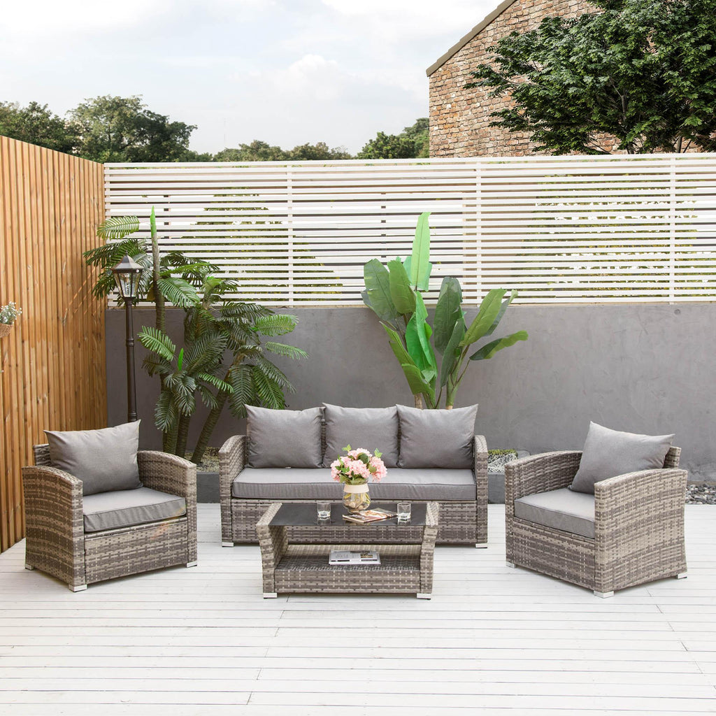 - ENSEMBLE DE JARDIN 4 PIÈCES : Cet ensemble de salon de jardin se compose d'1 canapé 3 places, 2 fauteuils et 1 table basse. Il peut être utilisé de différentes manières pour s'adapter à votre espace extérieur, comme un balcon, une véranda, une terrasse, une cour ou un jardin.