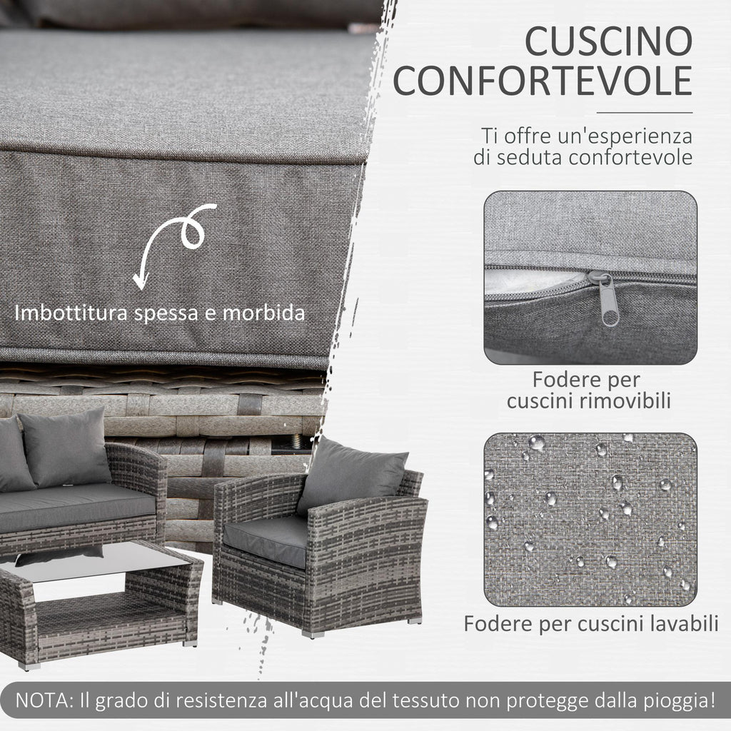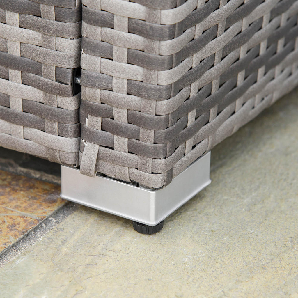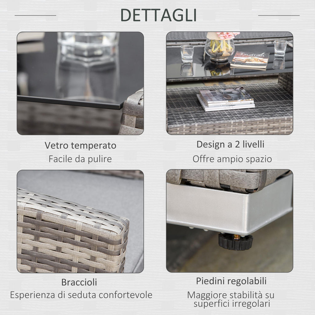 - MATÉRIAUX SÉLECTIONNÉS : l'ensemble de salon de jardin a une structure en métal galvanisé enduit de poudre, entièrement recouverte de rotin PE spécial pour une durabilité supérieure. Les coussinets réglables placés sous les pieds le rendent stable même sur des sols inégaux.