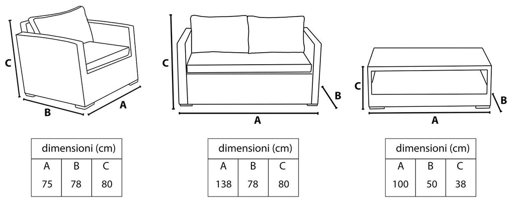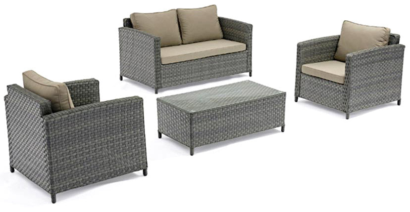 Salon de jardin canapé 2 fauteuils et table basse Kios grise