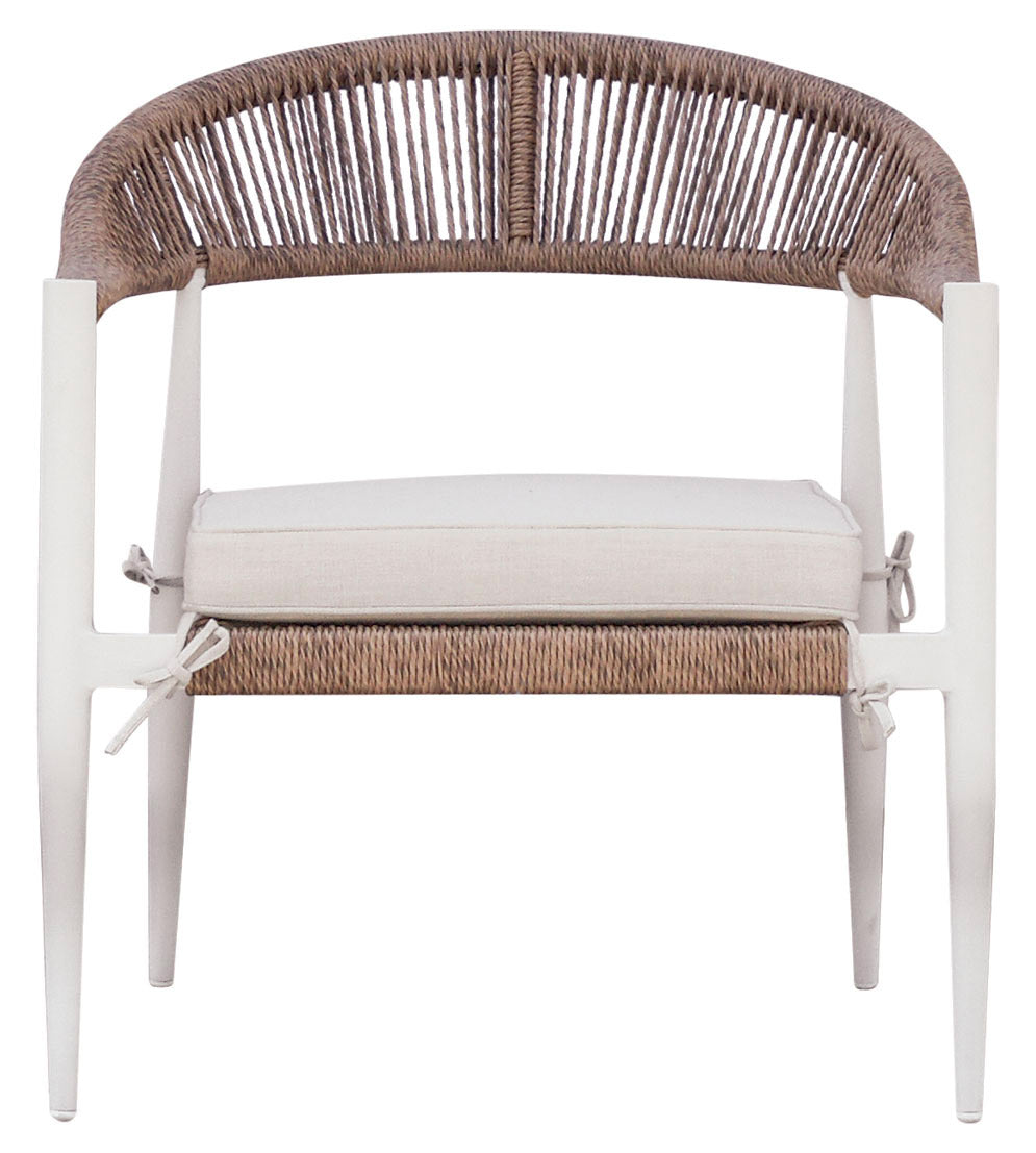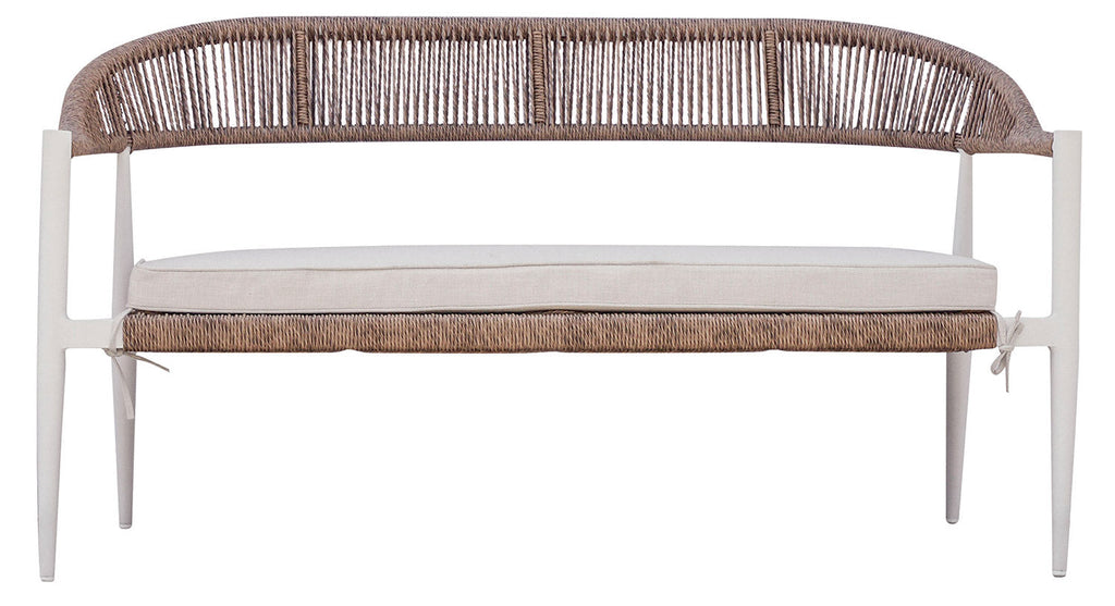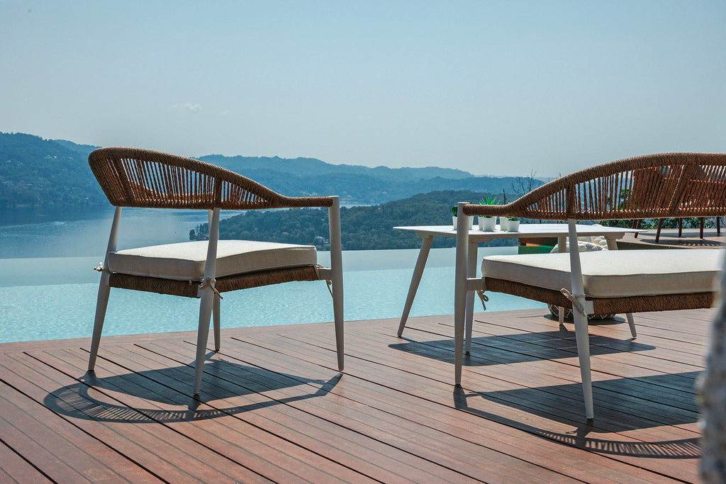 Set Salotto da Giardino Divano 2 Poltrone e Tavolino Milano In Alluminio Bianco con Cuscini Ecrù