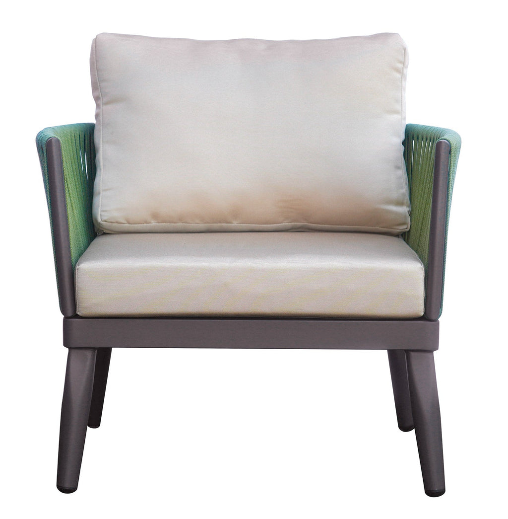 Set Salotto da Giardino Divano 2 Poltrone e Tavolino Nimes con Cuscini in Alluminio e Corda Verde e Grigio