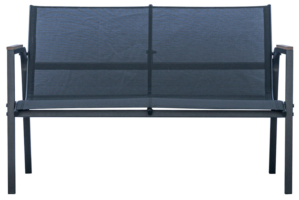 Set Salotto da Giardino Divano 2 Poltrone e Tavolino Tarquinia in Ferro e Textilene Antracite