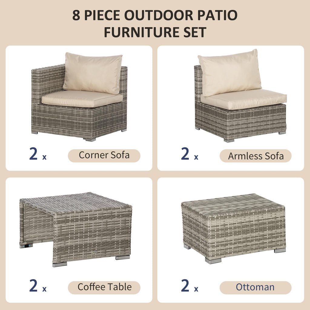- ENSEMBLE 8 PIÈCES : Cet ensemble de salon est parfait pour apporter un peu de fraîcheur à votre jardin ! Polyvalent et fonctionnel, il est composé de 2 fauteuils d'angle, 2 fauteuils simples, 2 poufs et 2 tables basses.