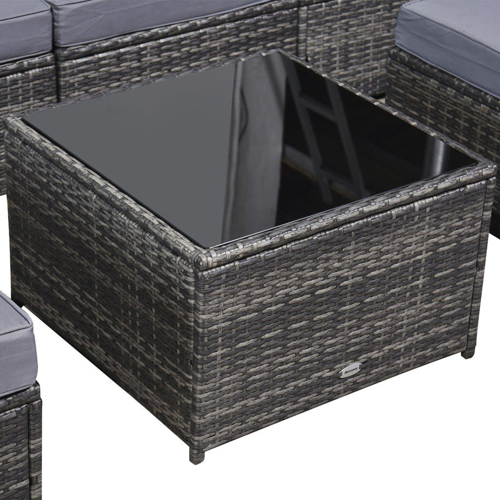 Salon de Jardin Canapé 2 Poufs et Table Basse en Rotin Gris