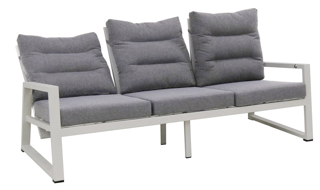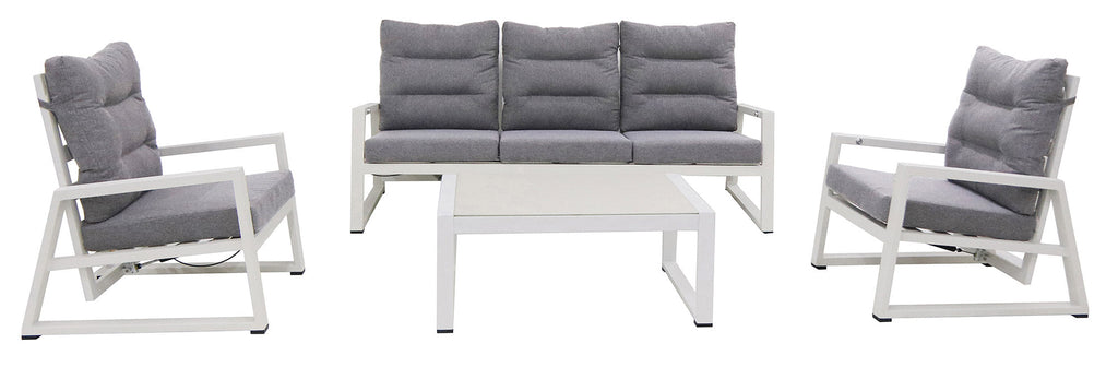 Mikonos est un salon pour espaces ouverts en aluminium avec dossiers inclinables et coussins amovibles.