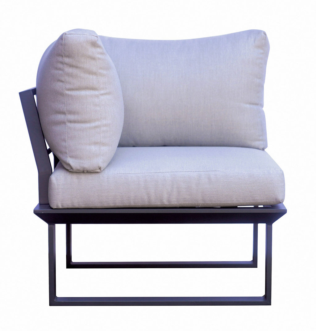 Il Set Saint Tropez Angolare è composto da due divani da 2 posti, un angolare, un tavolino centrale e tavolini laterali. I tavolini hanno il piano in resin wood e la struttura è in alluminio antracite. I divani sono di dimensioni 160x79 cm, l'angolare misura 72x79 cm e il tavolino centrale 64x41x55 cm. I cuscini sono sfoderabili e di colore grigio, per un'atmosfera elegante e confortevole.