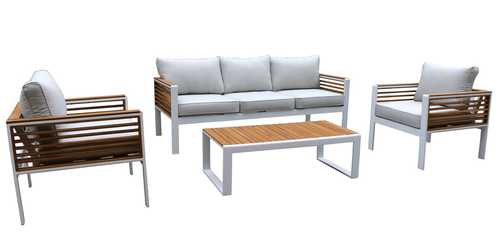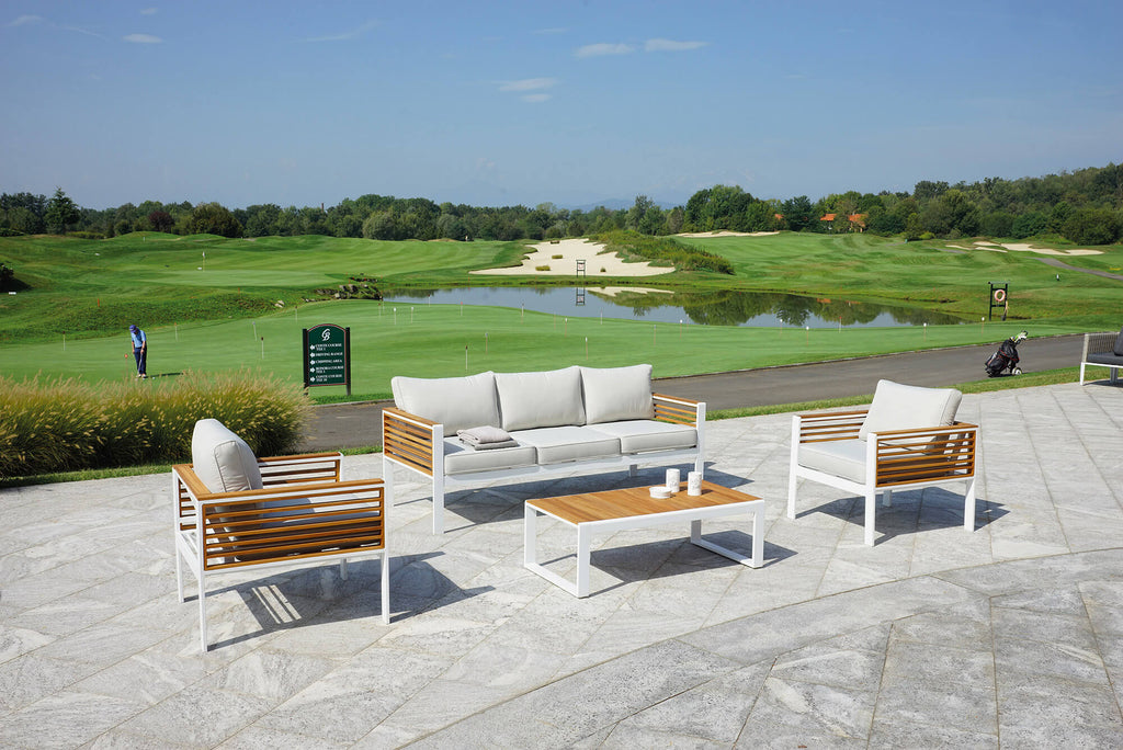 Ensemble Salon de Jardin en Aluminium Canapé 2 Fauteuils et Table Basse Vorghini Colonia