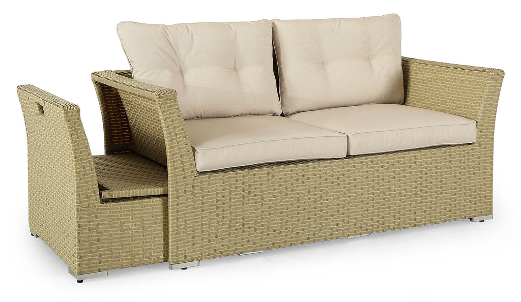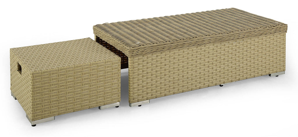 Le style de ce salon d'extérieur est élégant et raffiné, capable de mettre en valeur n'importe quel environnement dans lequel il sera placé, du jardin à la terrasse, du bord de la piscine aux espaces couverts de pergolas ou de stores. L'ensemble composé d'une table, d'un canapé, de 2 fauteuils et de 2 repose-pieds pouvant également servir de siège, est particulièrement confortable également grâce aux coussins moelleux et larges. La table basse avec plateau en verre trempé garantit une sécurité et une résistance maximale ainsi qu'un design contemporain et raffiné. La possibilité de ranger les fauteuils à l'intérieur du canapé et les repose-pieds sous la table rend cet article extrêmement fonctionnel également en vue d'optimiser les espaces existants. La structure entièrement en aluminium et le matériau de revêtement en rotin synthétique garantissent une qualité durable résistante aux agents atmosphériques et aux rayons UV.