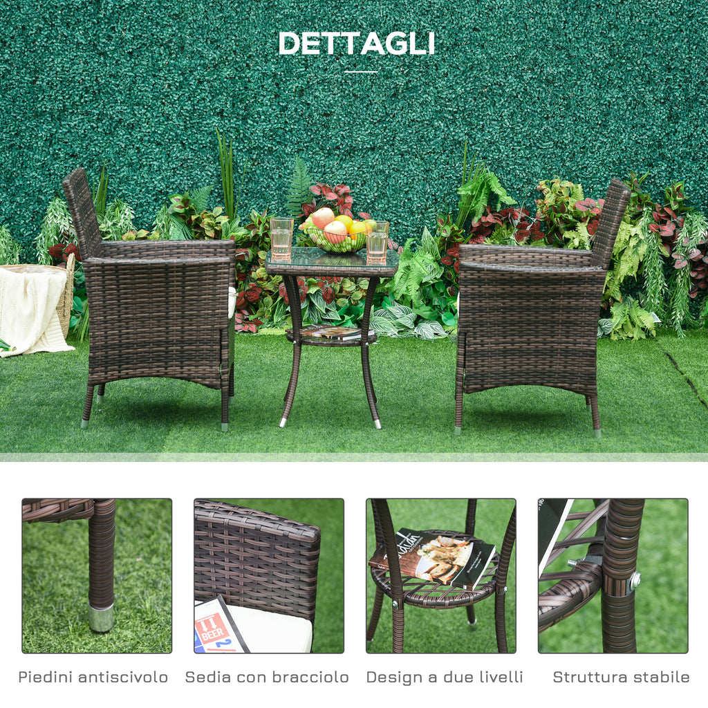 Salon de jardin en rotin synthétique 2 fauteuils et table basse marron